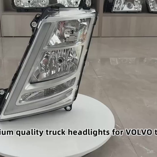 Housing, reflector and lens components are specified to withstand vibration, stone impact and road spray encountered by long-haul vehicles compatible with VOLVO. Routine inspection of lens clarity, housing integrity, adjuster function and wiring connections is recommended as part of scheduled maintenance and roadworthiness checks.